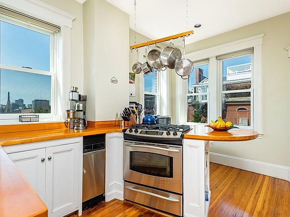 Absolutely drop dead gorgeous 2 bedroom corner penthouse has sweeping city views from almost every window and spectacular natural light is located on one of the best street gas lit streets in Charlestown. Open spacious living dining room layout with a built in wet bar, custom eat in kitchen with tons of storage, large bedrooms with deep closets, high ceiling, hardwood floors, AC, WD in unit, huge common roof deck, private storage This special home is a jaw dropping show stopper.