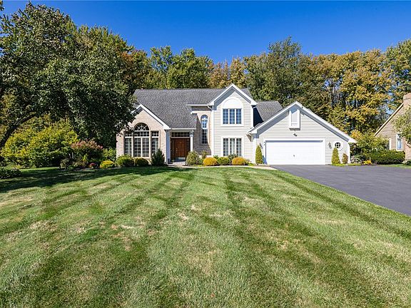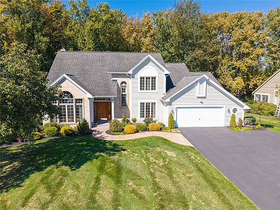 **PAST DELAYED** Welcome to 64 Chippenham Dr – a meticulously maintained, one-owner luxury home nestled in one of Penfield’s most sought-after neighborhoods! This stunning 5-bedroom, 3.5-bath home offers the perfect blend of elegance, comfort, and modern upgrades across three spacious levels. Step into the grand two-story foyer and feel instantly at home. The open-concept kitchen features granite countertops, an oversized island, and flows seamlessly into the great room with a custom electric fireplace surround, perfect for entertaining. Enjoy formal gatherings in the elegant dining room with tray ceiling or unwind in the 4-season sunroom, which overlooks the private, park-like backyard. The professionally landscaped .66-acre lot is a true retreat, adorned with Japanese maples, redbuds, and magnolias that bloom across three seasons. Outdoor living is a dream with a deck and stamped concrete patio ideal for gatherings. Inside, find five generous bedrooms, including a luxurious primary suite with soaring ceilings, a spa-inspired bath featuring a custom tiled shower and Jacuzzi tub, and ample walk-in closet space. A first-floor bedroom and adjacent full bath offer flexibility for an in-law or guest suite. The finished walkout lower level boasts a wet bar, half bath, bedroom, and loads of storage – ideal for entertaining, hobbies, or extended guests. Additional features include a central vacuum system, first-floor laundry, and built-in audio wiring in the great room. Every inch of this home reflects thoughtful updates and pride of ownership. Don’t miss your chance to own this exceptional, move-in ready property in the heart of Penfield! Close to Wegmans, YMCA, shopping, restaurants and more. See attached professional home measurement showing 3071 SF, which does not include finished portion of the basement.