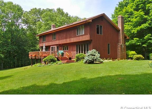 Stunning Sunny Contemporary with an Open Floor Plan and Cathedral Ceilings. Set on 4+ Open Level Acres. Quiet Private Location. 2 Fireplaces, First Floor Great Room, Open Sunny Eat-In Kitchen with Granite and a Pantry. Lots of Storage Space, Cathedral Ceilings, Master Bedroom Suite, Second Full Bath has a Soaking Tub and Separate Shower. Lower Level is Walk-Out with an Extensive Work Shop Area. Newer Huge Ipe Deck off Kitchen Over Looking Open Flat Yard with Gardens and a Shed. Minutes to UConn and/or I84.