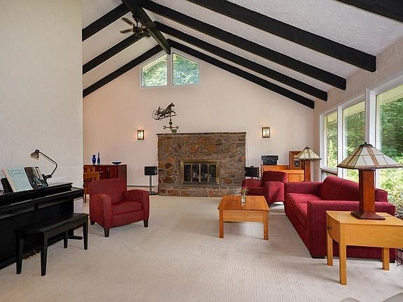 The complete package....Dramatic 2400sf 3 bedroom Contemporary, 3.65 acres, and a 40x30 Barn located in a wonderful neighborhood and abuts 350 acres of conservation land and trails. Upon entering the foyer one is drawn to the dramatic beamed cathedral ceiling fireplaced living room accented by a wall of windows and highlighted with stone fireplace and clerestory window which flows into the dining room. Impressive skylighted kitchen with custom cabinets, granite counters, stainless appliances, and tiled backsplash plus stunning accent wall in nook. The tranquil sunroom adds 3 season living space and opens to the deck. The large family room is accented by stone fireplace wall with bar has a wall of sliders to the large patio. The inviting large master with sliders to private balcony overlooks the private large yard also features a closet wall and updated bath with jacuzzi and large shower. The two other bedrooms share a full updated bath. The young barn is a contractor's delight !!