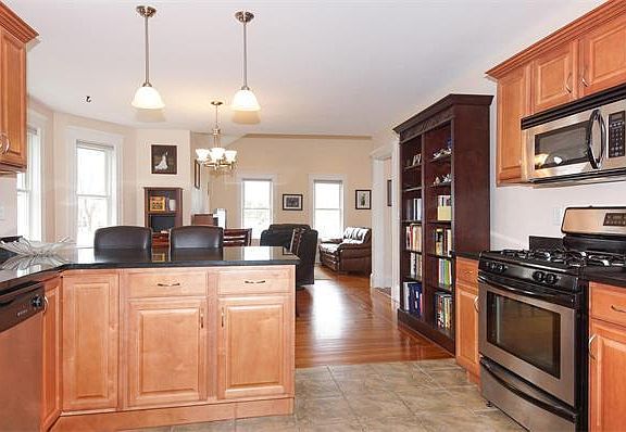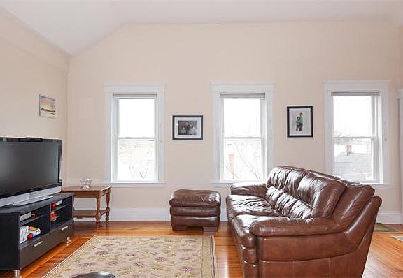 This picturesque third floor, 2 bed/1 bath, condo apartment offers spectacular cathedral ceilings, recessed lighting, energy efficient windows, newer heating system, central AC, and much more! Third floor walk-up opens up to a large living area with cathedral ceilings, sparkling hardwood floors and plenty of windows. The open dining and kitchen area are great for entertaining; fully applianced with stainless steel gas stove, refrigerator, dishwasher and microwave. 2 great sized bedrooms and updated bathroom. Laundry room conveniently located in unit with W/D provided. Private balcony overlooking large shared backyard. 2 car parking. Extra storage in basement. 1/4 mile from public transportation, parks, schools, shops, and other amenities. Available 9/1, possibly sooner.