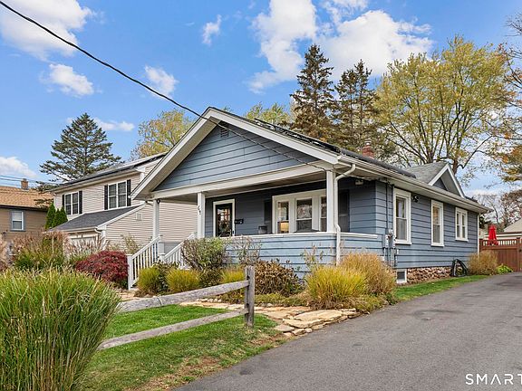 Charming ranch style Bungalow cottage located on quiet street. This move in ready home features a bright and cheery interior with newly refinished hardwood floors throughout. This would be a great starter home, condo alternative, or ideal for someone looking to downsize to one level living. Visitors are welcomed by a large covered front porch with composite decking and beadboard ceiling, the perfect place for meeting neighbors or lazy afternoons. Once inside, the tiled foyer leads to the open living room and dining area with high ceilings and charming arts & crafts style built ins. The kitchen features stainless steel appliances and plenty of cabinet and counter space. Two bedrooms and an updated full bath complete the main level. The basement has freshly painted walls, floor and ceiling, and provides ample storage space, laundry, room for a work bench, etc. Out the back is a spacious, level fenced yard with pea stone patio area, garden beds, shed and playscape. This is the perfect oasis to entertain guests or relax after a long day. Other features include newer furnace and central AC, newer chimney lining, repaved driveway, and efficient solar panels with battery storage backup that acts as a full house generator when there's a power outage. Centrally located with easy access to both Routes 6 & 72, and convenient to area schools and shopping, this home offers it all with nothing to do but unpack your bags and move in. This home is full of charm and shows beautifully!