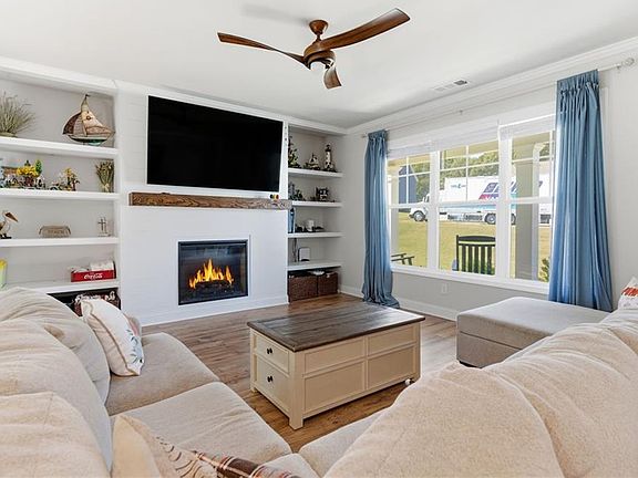Charming Farmhouse Style Two-Story Home on a double size corner lot! This beautiful home features neutral paint throughout and Luxury Plank flooring for a fresh, cohesive feel. The spacious open living room invites you in with a cozy fireplace flanked by built-ins, creating a warm and inviting centerpiece. The gorgeous kitchen offers white cabinets, quartz countertops, and a large island—perfect for additional seating and entertaining—while remaining open to both the casual dining area and living room. A main floor guest room and full bath provide flexible living options. Upstairs, the oversized primary suite impresses with a tray ceiling and spa-like ensuite bath, complemented by a loft area ideal as a flex space or office. Enjoy outdoor living on the covered back patio, overlooking a large, level, fenced backyard—perfect for relaxing or hosting gatherings. With a large, fenced yard, this almost-new home is waiting for you!