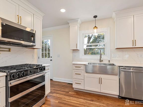 Located on a Quiet Dead-end Street with a country setting vibe, this five-bedroom, three full bathrooms Spectacular Home was Exquisite Fully Renovated from top to bottom. This exceptional home offers a blend of luxury, comfort, and convenience. Every detail has been thoughtfully curated with high-end finishes & modern elegance. Custom gourmet kitchen with quartz countertop, center island, new high-end appliances, stainless steel farm sink, Samsung gas convection double oven with air fryer, pot filler and built in microwave. Continuous flow of hot water gas hot water heater. Recessed LED lighting. All 3 bathrooms feature custom tile design and Noan low profile ultra quiet exhaust fans. Primary bedroom has a full bath and Toto Washlet. Living room has an electric fireplace with heat. Finished basement has luxury flooring and features an office with French doors, family room, exercise room and custom designed laundry room with cabinets, and separate entrance. New water treatment system. Custom paver patio front and back. New driveway. This home has easy access for parks, and the scenic Canal tow path. Convenient to major highways, Route 287, 95, and the Jersey Avenue/New Brunswick train station for daily commutes to NYC or Princeton NJ. Proximity to top-tier public charter and private schools, pharmaceutical & Research centers, and world-class medical hospitals. A vibrant array of shopping, dining, theaters, and recreation are just minutes away. Step into this tranquil and inviting home and make it yours.