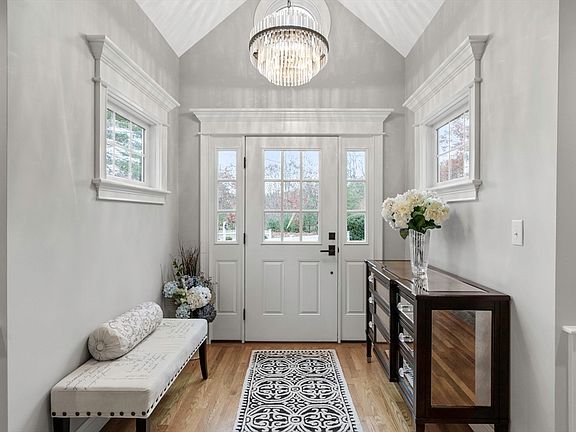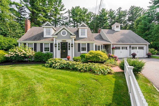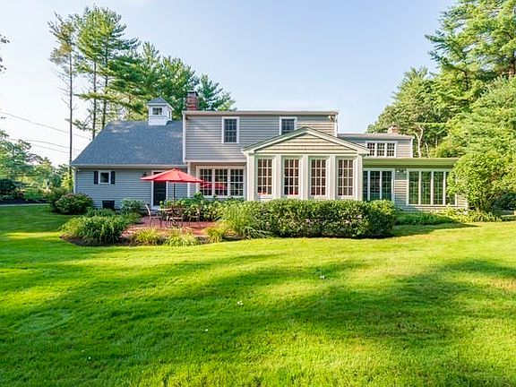 This stunning expanded Cape Cod home sits on a private 0.74-acre lot next to the desirable Freeman Farms neighborhood. Updated with a designer's eye, it features an open floor plan with quartz countertops, decorative lighting, ornamental trim, and gleaming hardwood floors. The vaulted entryway leads to a formal living room with a fireplace and study on the left, and a formal dining room with wainscoting on the right. The custom kitchen includes a center island and high-end stainless-steel appliances, opening to a sitting room with a fireplace, a sunroom, and a family room with built-in cabinets and large windows. Upstairs, there are three bedrooms, including a master ensuite with a walk-in closet. The professionally landscaped grounds provide a picturesque setting. Note: the septic system supports four bedrooms; the house currently functions as a three-bedroom home, but the study on the first floor can be easily converted to a fourth bedroom.