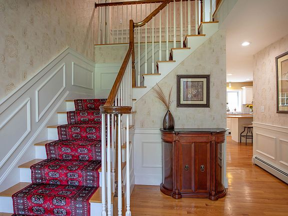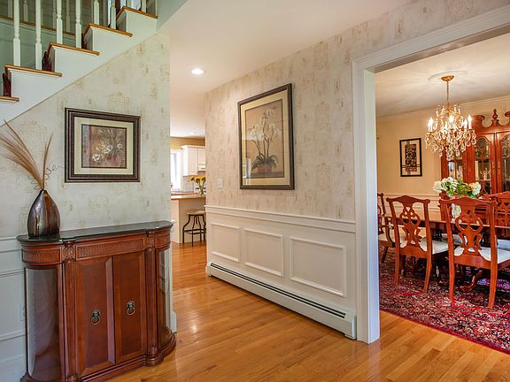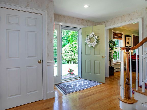 Savor in tranquility with this custom 4 bedroom 2.5 bath home with 4 garage bays on 1.68 acres nestled in Hampton’s exclusive Arluwade development. Relish the quietness and privacy of this expansive tree-lined property with easy access to Boston, Portland, and mountains while embodying the NH Seacoast lifestyle of beaches, golf and marinas. Come witness this impeccably kept home inside and out with southern exposure. Bask in the natural sunlight of the open-concept kitchen with wood stove fireplace, eat-in area that leads to the outside deck and fire-pit. The first floor has gleaming hard wood floors throughout and a formal dining room off the kitchen for family gatherings and celebrations. The mudroom with bench and large closet has easy 1st floor entrance to/from the garage, adjacent half bathroom and 1st floor laundry room. To the right, ascend to the 600 sq ft, vaulted ceiling great room offering flexibility for an office space, 5th bedroom or family/media room. The 2nd floor has 4 lovely bedrooms, full bathroom and a vaulted ceiling master bedroom with private bath and walk-in closet. The basement has a finished daylight room, additional storage areas and workbench. Car enthusiasts can boast over the detached 2 bay garage 32x28 with an option for a car lift. Above the garage, a second floor 500 sq ft office or private room with solid pine custom built wide plank floors and tongue and grove construction. This is a must see.