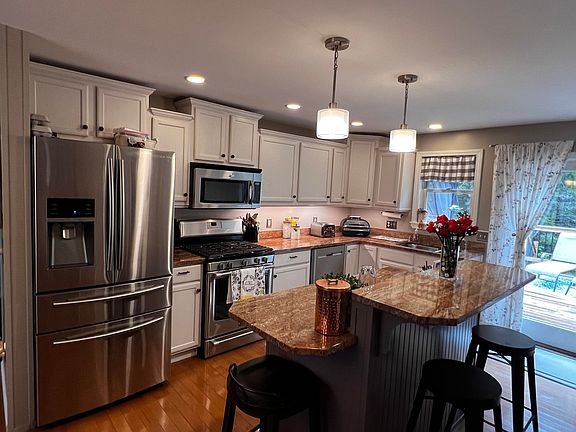 Welcome to 64 Guptil Farm Road! This lovely near-town subdivision on a public road is close to all local amenities including schools, shopping, Acadia National Park, and more! The renovated kitchen is immaculate, with upgraded appliances, granite countertops, painted cabinets, high bar, aned direct acccess to the two-car garage. The sliding glass door opens up to a private. back-yard oasis including large deck with pergola (included in sale), lush green lawn, and Bilco doors opening up to the frost wall/crawl space with tons of room for storage. Previously set up with a hot tub. The front deck has been newly stained and is ready for entertaining! The beautiful green lawn, tarred drive, and mature trees is a welcoming invitation to guests. Roof updated 2020. Relax in the living room with LP fireplace and cozy surroundings. Tons of closet space. Shed houses seasonal tools. Two-car garage currently utilized for additional living space but is easily converted to vehicle storage. Located in a very quiet subdivision minutes from the city on a city-maintained road. Do not miss this!