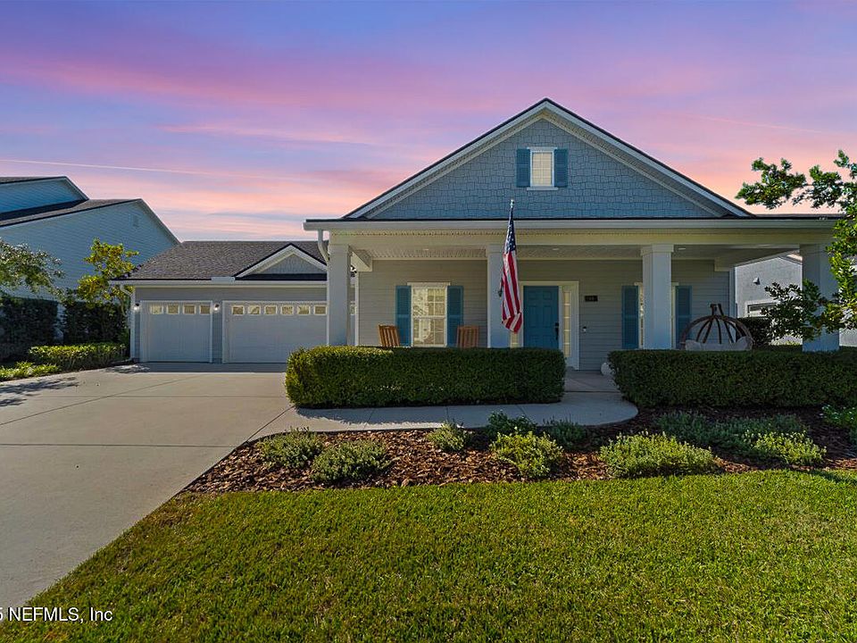 Welcome to this beautiful 4 bedroom, 2 bath home with a flex room & 3 car garage in the gated community of Markland. Designed with timeless charm & modern comfort, the inviting front porch sets the tone. The kitchen offers granite counters, double ovens, soft close doors, stainless appliances, glass tile backsplash, under cabinet lighting, farm sink & pendant lighting. The dining area opens to the great room with disappearing sliders leading to the screened lanai & backyard. The spacious master suite features a tray ceiling, custom walk in closet & bath with dual sinks, tub & walk in shower. The flex room is ideal for a home office or study. Updated with new lighting & hardware, this home also includes a new dishwasher, a water softener, UV HVAC purification system, upper & lower laundry cabinetry & pull down attic stairs. Enjoy Markland's amenities including clubhouse, fitness center, pool, pickleball, playground & more.