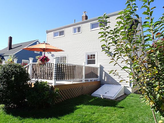 START PACKING! UPDATED EXPANDED Cape is Move-In Ready! Centrally located in residential neighborhood-steps to public transportation, park and school; also near shops and highways. Gorgeous Full Bath just remodeled. Updated EIK with Breakfast Bar for easy dining and SS Appls including Brand New Range and DW. Formal Dining Rm on first level can be 4th Bdrm. 2nd Level has 2 sizeable bedrooms and a Bath. Finished Basement with improved Rec Rm for added living space has walkout. Enjoy the outdoors relaxing on your oversized composite deck overlooking mostly fenced-in yard and storage shed. Manicured grounds, Updated 200 amp electric panel, Hardwood Flrs, Newer Vinyl siding, Replacement tilt windows, Newer HtWtrHt and more. Concrete walkway and long driveway for convenient off street parking. A MUST SEE!