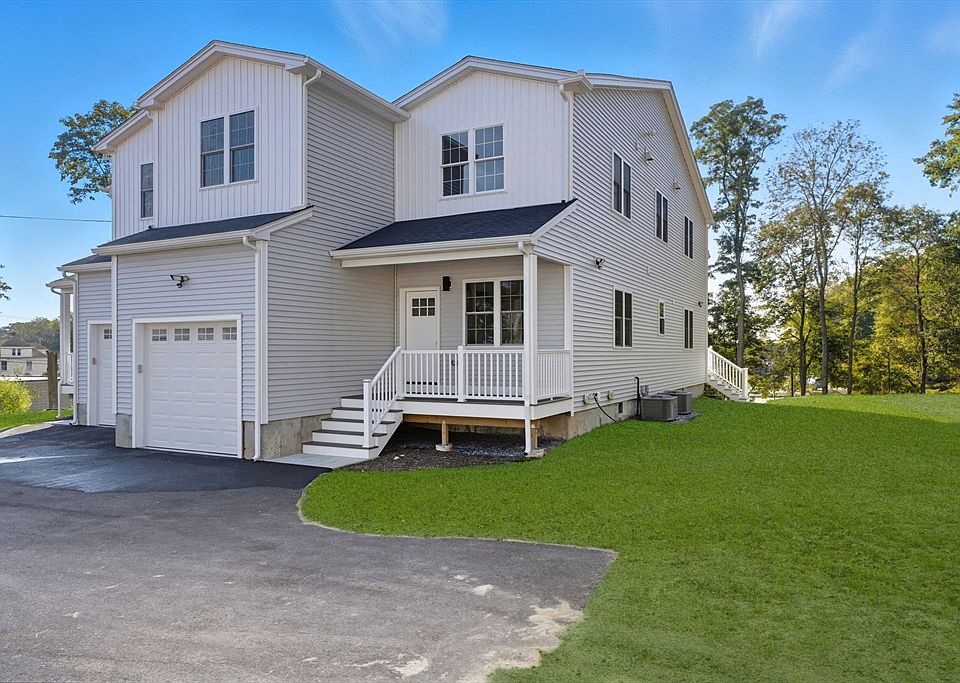 New construction! Beautiful single-family attached home with true hardwood floors on both levels. Enjoy the inviting front porch with low-maintenance decking. A unique entry room welcomes guests before entering the spacious great room. The kitchen is a chef’s dream—oversized island, pot filler, stone countertops, and plenty of seating for casual meals or entertaining. Upstairs features 4 large bedrooms with great closet space. The main bedroom boasts two identical walk-in closets and a generous en-suite with double sinks. Hall bath includes a tub/shower combo. There is a laundry room with stone flooring that offers room for storage and folding space. The finished basement has luxury vinyl plank flooring, a bathroom with a walk-in shower, a mechanical room, and a walkout onto a patio. Prime location near South Attleboro train station, I-95, I-295, I-495, Providence, and about 45 minutes to Boston. Walk to nearby shopping and dining!