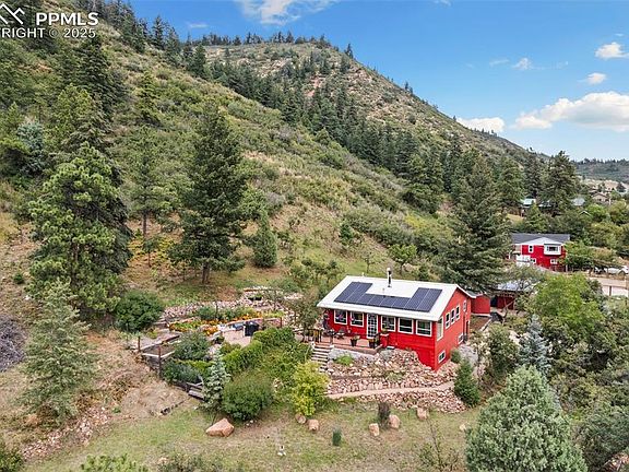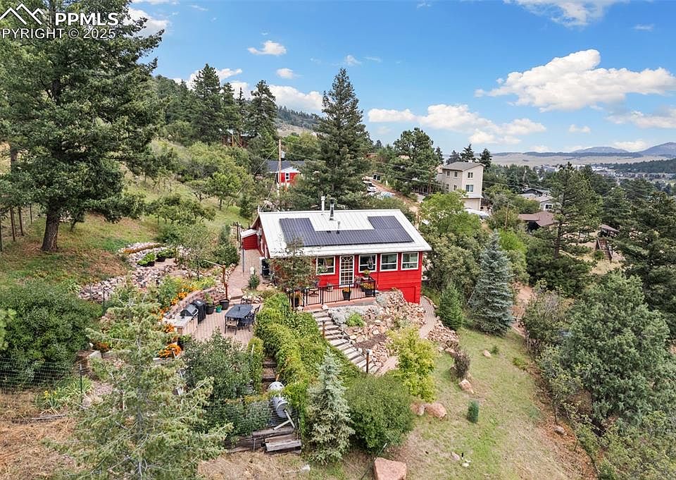 One-of-a-Kind Raised Ranch Home in the Foothills of Pikes Peak National Forest in Palmer Lake! Welcome to this Pristine Home, a Diamond in the Ruff, Nestled in the Heart of Nature, Offering Peace, Privacy, and Panoramic Mountain Views! Sitting on 3 Expansive Lots Totaling 23,591 sq. ft, this Property is Truly a Golden Nugget with all the Extras — Perfect for Anyone Seeking a Serene Retreat or Year-round Mountain Living. This 2-bedroom, 2-bath Home Features Thoughtful Upgrades and Rustic Charm Throughout. Enjoy Stunning Natural Light Through Thermos Double-Hung Soundproof Vinyl Windows with Roman Shades, and Walk Across Hickory Wood Flooring that Spans the Upper Level. Cozy up in the Cooler Months with a High-efficiency Natural Gas-burning Stove or the Wood-burning Fireplace with Beautiful Dry Stack Stone. Environmentally Conscious? You’ll Appreciate the Solar System that Powers the Home, and for added Peace of Mind, a Honda Backup Generator Ensures Uninterrupted Eectricity when needed. Step Outside and be Surrounded by Colorado Wildlife, Towering pines, and the Awe-inspiring Beauty of the Pikes Peak Region. The 1-car Garage adds Convenience, while the Expansive Lot Space Offers Room to Grow, Garden, or Simply Relax and Soak in the Extensive 360° Views. This is More than a Home — it's a Lifestyle. A Rare Opportunity to Own a One-of-a-kind Mountain Escape in an Excellent Location. Whether You're Looking for a Full-time Residence, Seasonal Getaway, or Investment, this Gem Won’t Last Long. Don’t Miss Out on this Diamond in the Ruff!