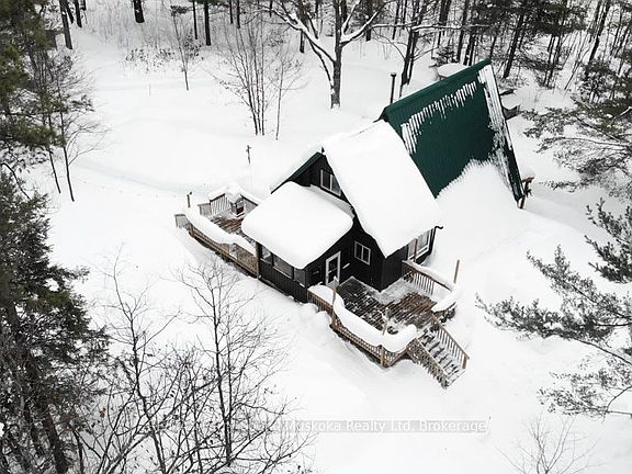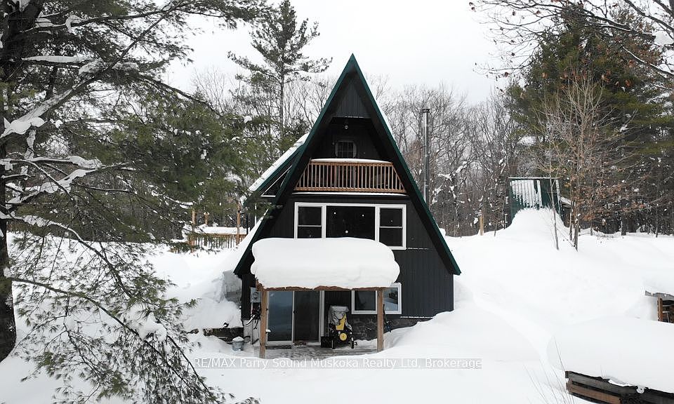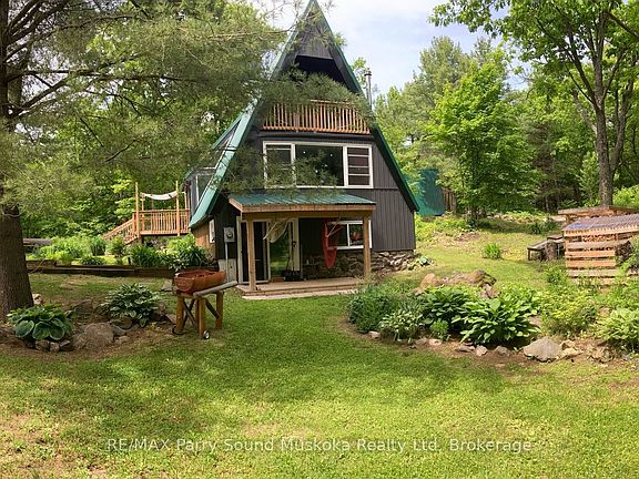 A charming A-frame tucked into the woods, just minutes from town. This 2.3-acre property abuts a 66' road allowance then 12 acres of Crown land and features a peaceful pond in the far corner, creating a private natural setting to enjoy year-round. Offering 1+ bedroom and two bathrooms, the home provides spacious living areas on both the main and lower levels. The lower-level walkout allows you to step outside and explore your own trails - strap on snowshoes in winter or enjoy a quiet walk without ever leaving the property. A separate bunkie offers additional space for friends and family. The large screened-in porch and decks on both sides extend the living space outdoors. Thoughtfully decorated, with a long list of upgrades and renovations available on the feature sheet. Surrounded by lakes, within 4 minutes to Horseshoe Lake Beach and close to the Seguin Trail system - part of the historic JR Booth Railway line and the Park-to-Park Trail - this location is ideal for hikers, cyclists, cross-country skiers, snowmobilers, and ATVers. Just minutes to Parry Sound for amenities and conveniences. Bell fibre is available at the road and runs to the house (not currently connected). Be sure to watch the video and book your private showing.