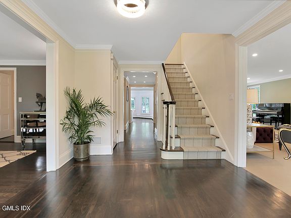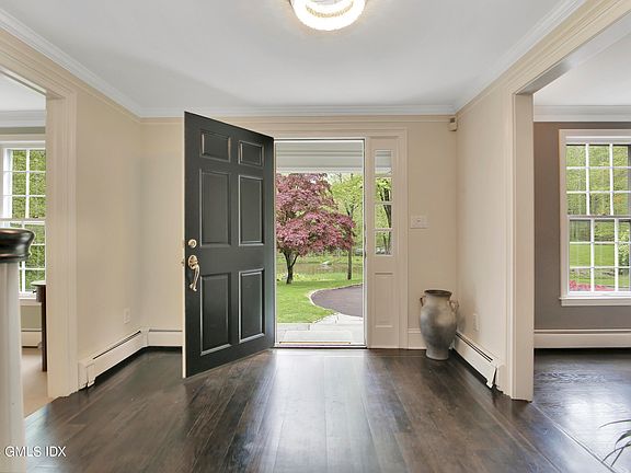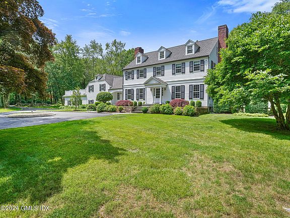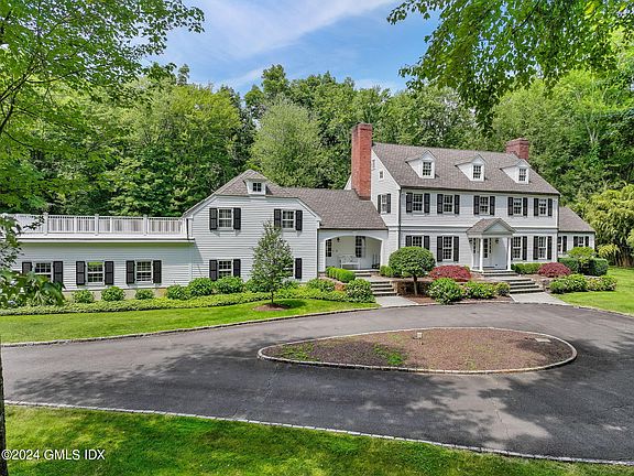 This stunning colonial sits on 4 acres complete w private pond, horse stable and level lawn. Borders a 200+acre nature preserve home to many Greenwich Riding Trails & walking / hiking trails. The 5 bed 4.2 bath home welcomes you with natural light and so much space! Double island eat-in kitchen flows through sunroom into family room Library is perfect Home Office with vaulted ceiling, 3 exposures, wet bar and .5 bath. In-law suite accessed by separate staircase provides privacy for guests Media room & gym downstairs Heated 2 car garage with 15' workbench. Bonus wine room in the basement can store 1600 bottles! Recently replaced septic pump, boiler, oil tanks, whole-home generator, and electrical panels. Zoned for Parkway Elementary and Central Middle Schools