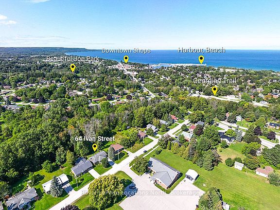 Nestled in a quiet, family-friendly neighbourhood, this charming 3-bedroom bungalow offers the perfect balance of comfort, privacy, and natural beauty. With exceptional curb appeal and lush, professionally landscaped gardens, the home backs onto a serene ravine, creating a peaceful, treed backdrop for relaxing or entertaining.Inside, the main floor features two spacious bedrooms, two bathrooms, and original hardwood floors and built-ins that add warmth and character throughout. Sun-filled living spaces and large windows enhance the inviting atmosphere.The full, finished basement expands your living options with an additional bedroom, bathroom, laundry room, and a generous recreational space that is ideal for family gatherings, hobbies, or a home office. Perfectly situated just minutes from downtown, this home offers easy access to the Georgian Trail, local hospital, library, and Georgian Bay Community School. Whether you are raising a family or looking for a tranquil retreat close to amenities, this bungalow checks all the boxes! Don't miss the opportunity to make this beautiful property your forever home!