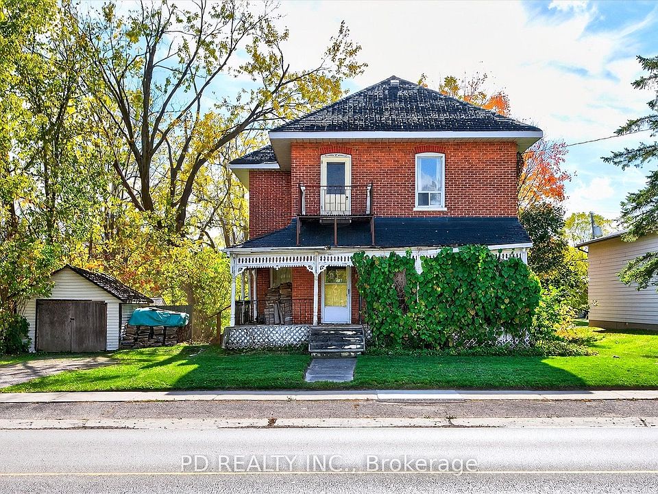 Full of charm and character, this 3 bedroom, 2 storey brick century home is perfectly situated within walking distance to Omemee amenities and just 1 minute from Scott Young Public School. The main floor welcomes you with an eat-in kitchen featuring a cozy woodstove and a walkout to a rear deck overlooking the deep 165 foot lot backing onto Mary Street, an ideal spot for summer evenings or gardening. The large living room faces the wraparound covered porch, offering a classic space to relax or entertain. A main floor laundry and bathroom combination adds everyday convenience. Upstairs, the generously sized primary bedroom, 2 additional bedrooms, and a 4 piece bathroom provide comfortable living for family or guests. The basement offers plenty of storage, and a new oil tank was installed in October 2025. With its timeless architecture and inviting spaces, this century home on the main street in Omemee is waiting for you to bring your vision to life.