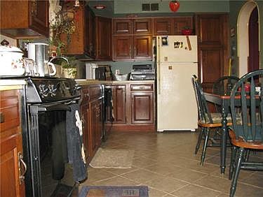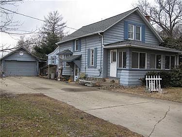 Cherry kitchen, tile floor, recess lighting. Full BR & bath on Main floor. Full bath & 2 BR upstairs. Hardwood floors, window seat in DR. Woodburner in basement. Wood insert in LR FP. Enclosed 8x18 front porch. Fenced yard. Above ground round pool w/solar cover, 2 pumps.