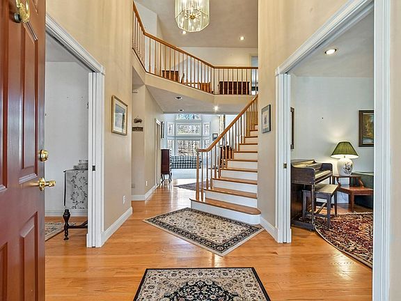 Welcome home! Well maintained colonial tucked away on a large wooded lot! W/ over 1.5 acres of land, this home provides peace & quiet, while still being minutes away from numerous restaurants & shops! Enter in through the open foyer. You're greeted w/ beautiful hardwood flooring all throughout. The kitchen offers a breakfast bar for 2, gas stove, & ample counter/cabinet space. There is a separate formal dining room w/ pocket doors and a formal sitting area. The living room boasts large picture windows, sky-high vaulted ceilings, & a fireplace. 1st floor primary bedroom has large walk-in closet & a private en-suite w/ a shower stall & jacuzzi tub! 1/2 bath & laundry room complete 1st floor. 4 additional bedrooms and 2 bathrooms on level 2. This house doesn't lack space! Outside find the beautiful wrap around wooden deck. The additional back deck is ideal for outdoor entertaining! Large basement w/ tons of storage & a 3 car garage! Don't miss out - see all this home has to offer!!