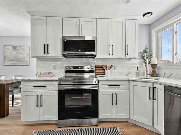Nestled on a quiet dead-end street in the desirable Riverside area, this charming three-bedroom, two-bathroom split level home, built in 1994, offers serene living with stunning views of Bullock Cove, visible from the backyard. Situated on a half-acre lot, you'll enjoy the peaceful sights and sounds of nature, with birds and wildlife surrounding the property. The home features a brand-new kitchen with quartz countertops and premium Samsung appliances. The entire main floor is beautifully finished with luxury vinyl plank flooring, while the upstairs offers classic hardwood floors. Both bathrooms are tastefully updated for added style and durability. A heated, attached one car garage provides convenience, and central AC ensures comfort throughout the entire home. Recent updates include a new roof, oil tank with maintenance-free siding, offering a move in ready, low maintenance lifestyle. Located just a short walk from the East Bay Bike Path and close to local coffee shops, restaurants, the library, and grocery stores, this home is perfectly situated for both peaceful retreat and daily convenience. Easy access to highways adds to the appeal. With its modern upgrades, stunning views, and connection to nature, this home is a true sanctuary in prime location.