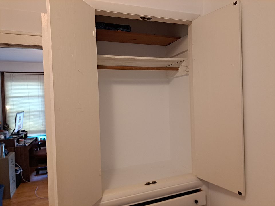 It's a room in an upstairs of a duplex in an old house with lots of old hardwood floors. The basement is shared with the neighbor where we have free laundry, lots of storage space, & I have an olympic weight set with bench & squat rack that we share.