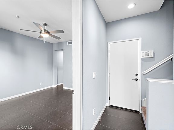 Experience Sophisticated Urban Living at its finest in this Model Perfect Home with the perfect blend of Exquisite Style, Urban Attitude, and Modern Design. Walking distance to City Walk and Towne Center, the location of this home in the Vantis neighborhood is absolutely on trend.  As you approach the front door, you will be captivated by the beautiful panoramic views and common area just outside.  Entertain friends and family at the community bbq and outdoor sitting areas as you take in the hills and mountain views and enjoy the SoCal sunshine.  First floor features a secondary master with upgraded ensuite bathroom.  Custom designer tile, infinity glass doors and new fixtures add style to the space.  Soaring cathedral ceilings greet you as you walk up to the second level living space.  Huge picture windows with peek mountain views and tons of natural light grace the living room space.  Open concept dining room opens up to a quaint patio space.  Kitchen features tons of storage, stainless steel appliances and granite countertops.  Additional laundry room and storage built in storage are right off the dining room.  Architectural details are found throughout the home, especially as you head up to the primary suite that features a private bedroom and additional flex room that could be an office, gym or even a 3rd bedroom.  Primary bathroom has been remodeled with new designer shower and beautiful fixtures with an eye to modern style.  Two car side-by-side attached garage is a huge bonus, providing additional storage and ample space with built-in cabinets and overhead storage racks.   Enjoy resort like amenities, 6 beautiful “sense” gardens, Vantis Club with private gym & state of the art exercise machines, a sparkling pool & spa, covered cabanas, outdoor Kitchen & BBQ, 2 fireplaces, Billiards room, and business center.