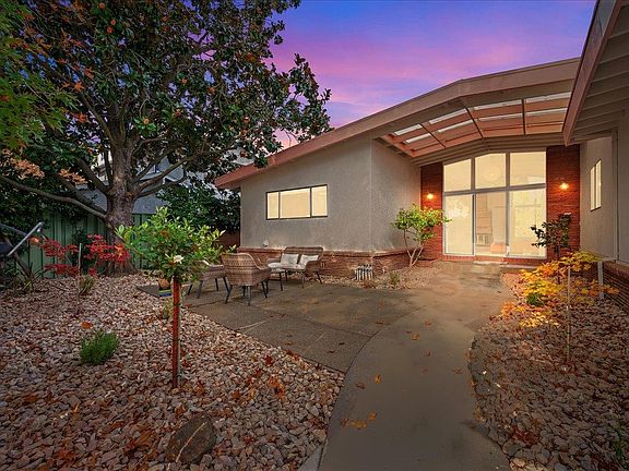 Designed by renowned mid-century modern architects R.L. Spore and M.F. White, this Greenhaven home embodies a treasured chapter of Sacramento's architectural story and the enduring desirability of true mid-century modern living. Thoughtfully updated to preserve its original character, the home showcases purposeful design choices from iconic light fixtures and switches to its clean, timeless lines. A private, shaded front courtyard with a magnolia tree sets the tone, leading to a dramatic entry framed by floor-to-ceiling windows that seamlessly blur the boundary between indoors and out. Inside, soaring ceilings and a classic brick fireplace define the living room, filled with natural light and lush backyard views. The den, or secondary living space, offers a cozy space to take in the outdoors. The primary suite provides a wall of closet space, hardwood floors, and leads to a tasteful ensuite bath kept true to its era. Updates include new TPO roof (2025), fresh exterior paint (2025), front fencing restored to preserve authenticity, and refreshed landscaping. Additional highlights include an updated hall shower, a large storage shed and yard spaces designed for year-round enjoyment. Parks, trails, the river, and downtown Sacramento are just minutes away! Come make this one yours!