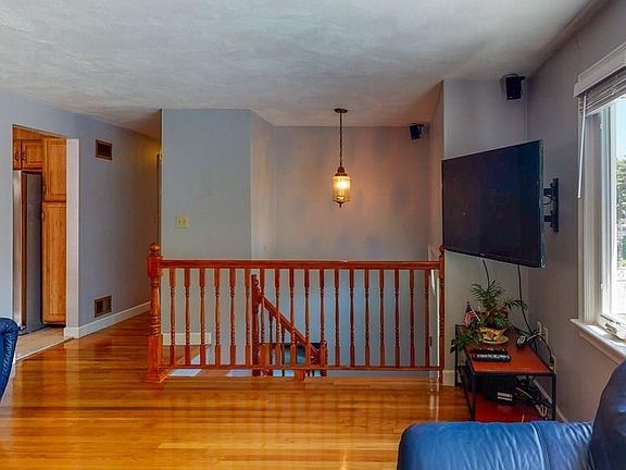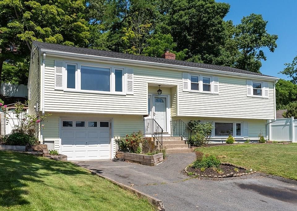 Lovingly maintained three bedroom, multi-bath split entry: boasting vinyl siding, replaced windows, a NEW roof. and freshly painted interior! Hardwood floors throughout first floor. Open livingroom and diningroom with sliders to private deck WITH AWNING for shade and comfort. Updated kitchen and full bath. Huge familyroom w/fireplace! Extra office/game room in lower level. Separate laundry room with sink and cabinets. Awesome location for access to everywhere: public transportation, shopping, houses of worship, MA Pike, medical/dental offices, park.