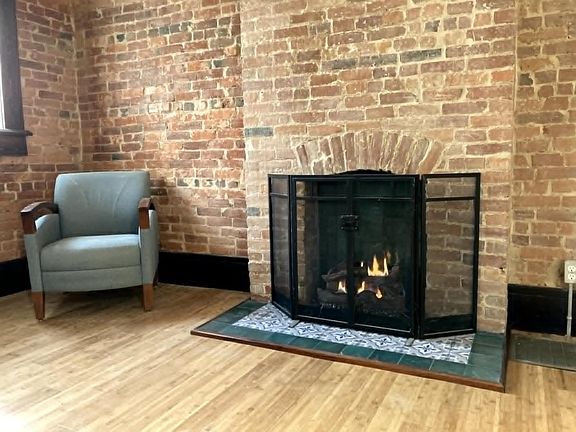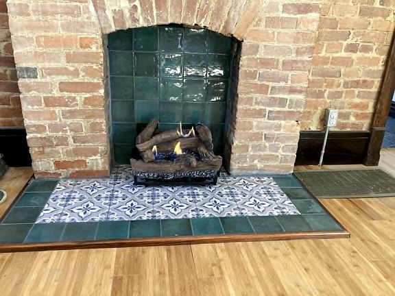 Gas fireplaceExposed brickOff street parking spacesWood workBamboo flooringTile in kitchenMarble in bath