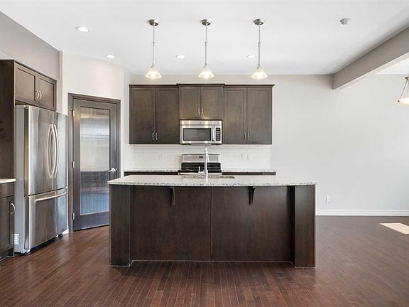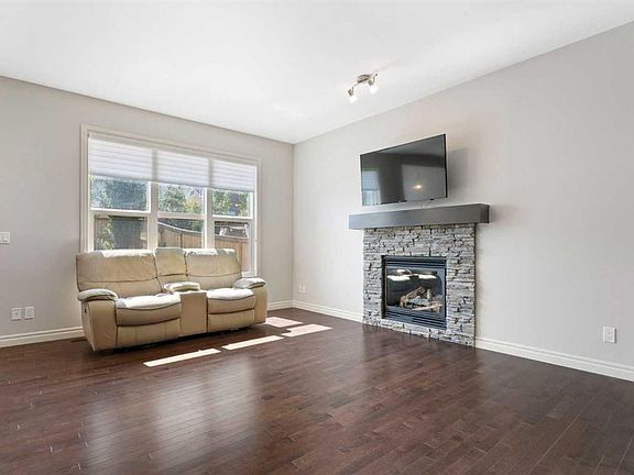 Beautifully maintained and move in ready, this home is located steps away from a peaceful green space and just minutes from shopping, dining, and other amenities. The main floor features a bright open layout with a kitchen that includes a center island and walk through pantry, leading to the mudroom and heated attached garage with workbench. Large windows fill the space with natural light and overlook the south facing backyard. This beautiful home is equipped with modern upgrades and thoughtful details throughout. The property features a central automated irrigation system with sprinklers in both the front and back yard, providing convenience and a lush, green landscape during the summer days. The backyard has been upgraded with over $40,000 in enhancements, including a spacious deck, a gas outlet for a BBQ and heater, and a dedicated connection for a hot tub — creating an exceptional outdoor space perfect for entertaining and relaxation.  Upstairs, you will find three bedrooms, including a vaulted primary suite that adds elegance and space. The suite features a walk in closet and a luxurious ensuite with double vanity and oversized open shower. Additionally, the master bathroom boasts heated floors, offering comfort and luxury in every season. A vaulted bonus room provides additional living space, while upper level laundry and a second four piece bathroom complete the floor.  The fully finished basement offers a family room, bright bedroom with large window, four piece bathroom, and wet bar. Additional highlights include air conditioning and abundant natural light throughout. For added convenience, the garage is also heated, making winter mornings easier and providing extra usability all year long. This home is ready to welcome its new owners.