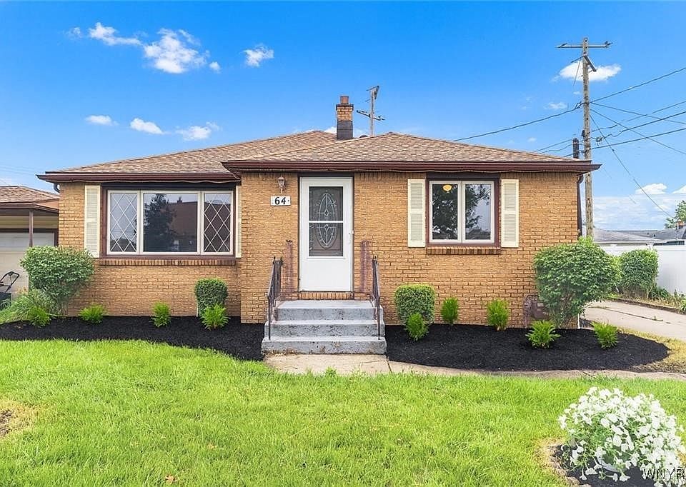 Welcome to 64 Nadine Drive – a solid, well-maintained 3-bedroom brick ranch located in a highly desirable and convenient Cheektowaga neighborhood. This home features hardwood floors throughout, offering warmth and character. The spacious, partially finished basement is perfect for entertaining, hobbies, or additional living space! Enjoy comfort with central air, and peace of mind with a generator hookup and a 60-amp electric sub-panel in the garage. Major mechanicals – including the furnace, water heater, and central A/C – are all less than 3 years old. Timeless brick exterior, easy one-floor living, and close proximity to shopping, dining, parks, and major roadways, this move-in-ready home blends classic charm with smart updates. Don’t miss your opportunity to own this well-cared-for gem! Public records do not match the correct square footage as remeasured by agent.