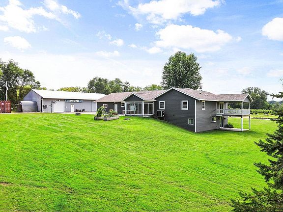 Discover your dream retreat! This 5 bedroom, 3.5 bath home sits on 12+ private acres with a secluded driveway, a peaceful pool/pond, and enjoy coffee in the morning with the three-season porch. Remodeled primary bathroom, new security gate, remodeled kitchen, new roof/siding, recent lower level addition with walk out to private yard. 80X40 HUGE outbuilding, insulated, heated, ready to go, PLUS 3 car garage. Complete privacy from all neighbors, in seclusion. Inside offers spacious living, while just across the street from Camrock Trails!