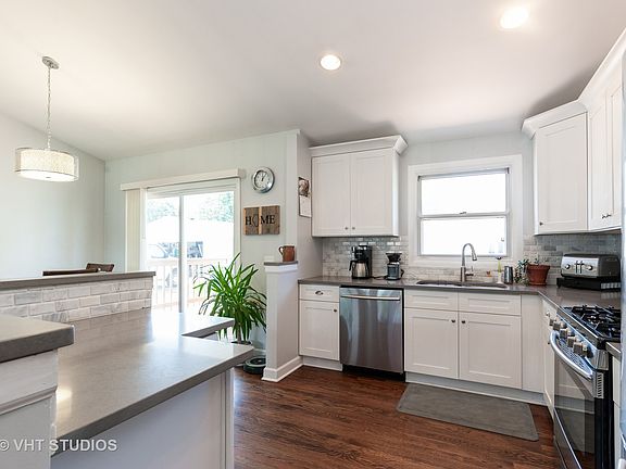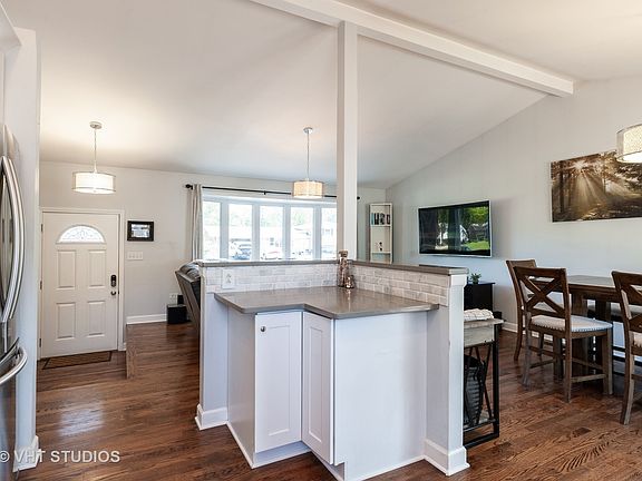 Beautifully updated tri-level located in the coveted Milburn grammar and Lakes high school district! This home has a wonderful open floor plan with vaulted ceilings that provide an open and airy feeling. Hardwood floors flow throughout the main level and most of the upper level. The kitchen sparkles with white shaker cabinets, carerra backsplash, quartz countertops, recessed lighting and stainless appliances. The dining/eating area is immediately off the kitchen and has sliding glass doors that lead to the deck and large fenced back yard. The lower level family room is huge and has an updated bath, laundry room and access to the back yard...it's a great room for those football games or simply entertaining family and friends! All three bedrooms have hardwood floors and ceiling fans. The 3rd bedroom has built-in shelving perfect for the bookworm who loves to read or for showcasing your treasured items. The 2nd full bath is beautifully updated and features his and her sinks, quartz counter, custom tile work in the bath/shower area and new light fixtures and accessories. Add all this plus a large fenced yard, nice-sized deck, 2-1/2 car garage with a driveway that was replaced August 2020 and you found yourself a real winner! Enjoy scenic walks, a hike or bike ride in the woods or cross country skiing at nearby McDonald Woods. It's only a few blocks away!