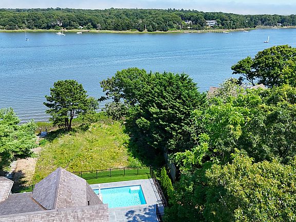 Mayflower Point, Orleans. This extraordinary waterfront estate on Little Pleasant Bay. Eastward Companies, synonymous with Lower Cape luxury homebuilding, has exquisitely designed this 5800 sq ft shingle-style masterpiece to showcase their coastal aesthetic in a fantastic saltwater setting. The covered entry porch beckons to the main floor which is entirely dedicated to gathering and enjoyment. The coffered-ceiling great room features walls of windows and access to the classic porch w/retractable screens. The hand-crafted luxury kitchen is replete with features including a butler's pantry and a custom island that seats eight. Extensive fenestration ushers in light and captures deep views. Ornate millwork and finishes adorn every room. The 2nd floor, accessible by stairs or an elevator, offers three guest suites plus an elegant primary bedroom wing and a fireplaced family room, both with dramatic views. The lower level provides media, exercise and additional sleeping space. The waterside outdoor area includes a saltwater gunite pool, gas firepit, expansive granite patio and stairs to water's edge for swimming, kayaking and mooring access