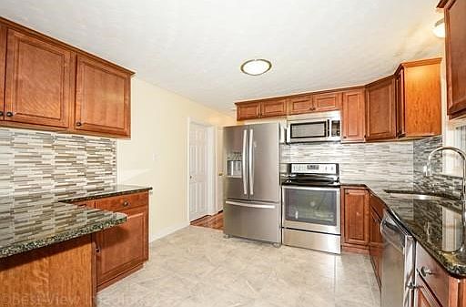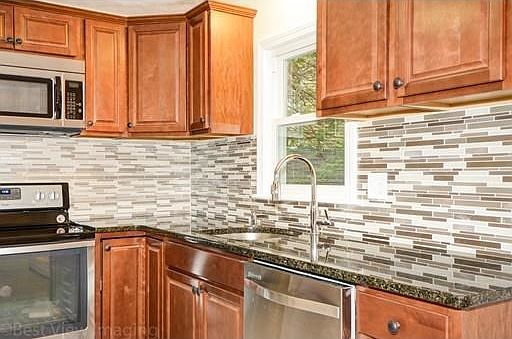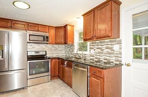 Updated 4 bedroom/2 full bathroom ranch in neighborhood setting, walking distance to elementary & middle school, shops & parks. Exceptional value for this updated ranch. Living room w/bay window & gleaming hardwood floors. Open floor plan for Dining Room & Kitchen. Remodeled Kitchen w/new cabinets, granite counters, sink & fixtures, tile floor & stainless steel appliances. All four bedrooms w/closets, updated lighting, newly painted & refinished hardwood floors. Main bathroom updated w/new tile floor, vanity, lighting & more. Remodeled Master bathroom w/ new shower, double sinks, granite counters & more. Interior newly painted & all lighting updated. Family room w/hardwoods, fireplace, built-in bookcase. Finished lower level w/bonus room, closet, recessed lighting & tile floor. Storage Room, Laundry Area & Garage. Exterior updates include new roof, siding, gutters, windows, exterior doors, lighting, paved driveway & garage door. Close to major highways & commuter rail. Stop by to see!