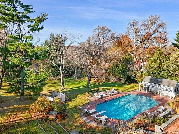 A true masterpiece of timeless design, this stately 5-bedroom, 7-bathroom Colonial is gracefully set on a pristine, level 2-acre estate in the esteemed Sterling Ridge Neighborhood. Rebuilt in 1993, this iconic residence embodies sophistication, refinement, and unparalleled elegance. A sweeping circular driveway leads to the grand entrance, while the heated gunite pool and charming pool house provide a resort-like ambiance. Upon entering the grand foyer, you are greeted by an abundance of natural light streaming through a magnificent wall of glass, illuminating the home’s exquisite architectural details. The formal living room, with its elegant fireplace, and the expansive family room, featuring a soaring double-height ceiling, a second fireplace, and a wall of windows overlooking the lush grounds, offer an atmosphere of grandeur and warmth. The formal dining room is perfectly suited for hosting distinguished gatherings, while the gourmet eat-in kitchen, complete with a center island and a sunlit breakfast nook, is both functional and inviting. A stately library and home office, adorned with rich wood-paneled walls, exude sophistication, while a walk-in pantry, spacious mudroom, oversized laundry room, and a cozy den provide thoughtful convenience. Completing the first floor is an attached three-car garage, seamlessly integrated into the home’s design. The second floor is a sanctuary of luxury, anchored by the palatial primary suite. This private retreat boasts three walk-in closets, a lavish dressing area, and a spa-inspired bathroom with dual vanities and a central shower. Four additional oversized bedrooms, each with ensuite bathrooms, offer comfort and privacy. A versatile bonus room above the garage, complete with a full bathroom, is ideal for a gym, playroom, or guest quarters. The lower level presents endless possibilities, whether as a recreation room or additional storage. Outdoors, the expansive terrace and patio overlook manicured lawns, while the pool house, complete with a bathroom, enhances the estate’s allure. The grounds are a harmonious blend of elegance and functionality, with ample space for entertaining and serene relaxation. This distinguished residence, with its impeccable craftsmanship and timeless appeal, offers a lifestyle of grace and grandeur. A rare offering, this home is certain to captivate even the most discerning buyer. Words and images cannot fully convey the magnificence of this extraordinary property, an absolute must-see.