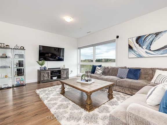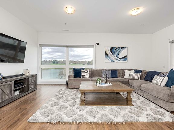 Welcome to the upscale and distinctive Vista Blue Condo Building, perfectly located in the heart of Tottenham, right beside the scenic Trans Canada Trail. Take in breathtaking views of the Tottenham Conservation Area or enjoy a leisurely stroll to one of the many charming local dining spots. Unwind on your private balcony, where west-facing views offer stunning sunsets and a glimpse of the northern lights. With essential shopping just 100 meters from your doorstep, daily convenience is always within reach. This premium corner unit with spectacular water and conservation views is a rare opportunity. Featuring a spacious 1,356 sq.ft. layout -one of the largest in the building this exceptional 2-bedroom, 2-bathroom turnkey condo blends style and comfort. The primary bedroom includes a walk-in closet with custom organizers and a luxurious 4-piece walk-in shower. The open-concept design is ideal for entertaining, with a modern kitchen that includes stainless steel appliances, granite countertops, and a center island. Enjoy two walkouts to the balcony, an ideal spot to relax and soak in the serene surroundings. A gas BBQ hookup adds even more convenience for outdoor entertaining. Additional features include two rarely available parking spaces-one underground and one surface spot plus a dedicated storage locker. Situated in a prime location, you're just steps from shopping, dining, transit, and picturesque walking trails everything you need is right outside your door. Come experience why this stunning condo could be your perfect next home.