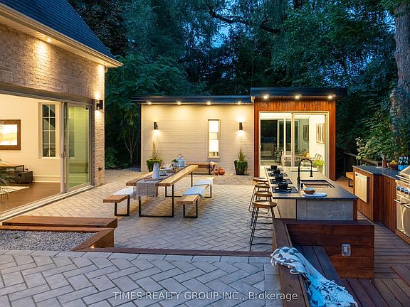 Unparalleled location in the heart of Ancaster nestled into a mature nature reserve with only one neighbour. This property invokes a luxury Muskoka ambiance with an impressive, towering & architecturally designed custom home. Imported natural stone facade. Alfresco indoor/outdoor entertainment space with hot tub, outdoor kitchen w/ searing station, BBQ, two-burner stove & sink. Backyard office & studio w/ wrap-around patio. Wine Cellar, Cold Room & Wine Tasting Room w/ guest bathroom. Indoor Spa w/ Sauna, Jacuzzi, showers, change room, double vanity, TVs & fireplace. Chefs kitchen w/ 48 6-burner stove w/ griddle, double gas ovens, side-by-side fridge & freezer, 150 bottle wine cooler, double electric ovens & B/I microwave. Butlers pantry w/ 2nd dishwasher, sink, prep counter, storage. Ground floor In-law suite w/ ensuite & 2nd laundry. Gym w/ bath. Theatre room w/ wet bar. Smart doorbell, HVAC & garage door opener. In-ceiling speakers, Security Cameras, EV Charger rough-in.