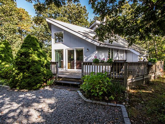 Cozy Contemporary in Katama! A sunny open concept with vaulted ceilings, large windows and glass doors leading out to a spacious wrap-around deck, the home offers great gathering areas whether inside or out. Comfortable accommodations include two guest bedrooms on the first floor and the primary bedroom with a private balcony on the second. Town sewer is available and would allow for future expansion to six bedrooms and a guest house with proper permitting - lots of options! Located within 2 miles to all Edgartown offers - swimming at popular South Beach and shopping and dining in the Village. And for kayaking and paddleboarding, the Edgartown Great Pond is only 1 mile away! Offered turnkey and with a solid rental history.
