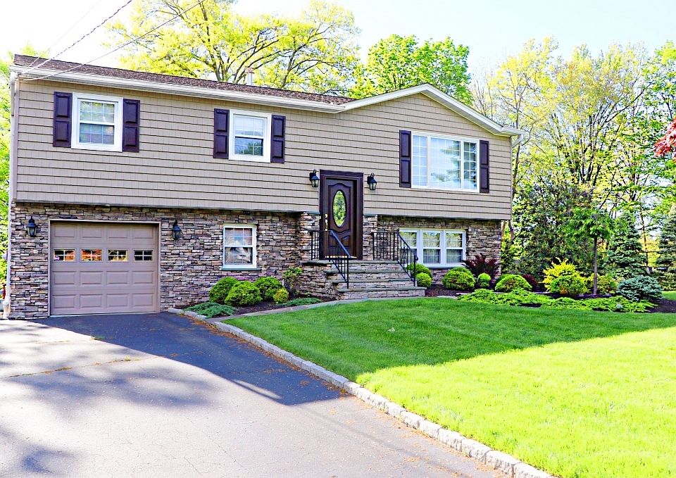 This lavish, tree-lined, meticulously landscaped property offers beautiful aesthetics, privacy and is maintained by an in-ground irrigation/sprinkler system and featured by evening landscape lighting. The exterior features a new roof (2019), wrapped in new vinyl shake and siding and complimentary cultured stone dressing up the front foundation (2017), new backyard blue stone patio (2015), painted deck and installed brand new MHP gas grill mounted to deck (2018), new pre-fab vinyl sided back yard shed (2016). The interior was renovated (2010) with an open floor plan including professional kitchen appliances, wood cabinetry with maple finish, backsplash, granite countertops, matching granite center island, dining room with view to deck and the three dimensional, peninsula style gas fire place set in cultured stone in living room. The fireplace view and ambiance is appreciated from kitchen, dining room and living room. Continuous solid oak wood floors span the entire upstairs with satin Jacobean dark finish. The master bedroom with en suite walk-in closet has French door entry and an en suite spa like bathroom with glass-enclosed shower with granite bench and shelving as well as Jacuzzi tub with jets and window (new 75gallon water heater installed 2019). Ceramic tile covers master bathroom, floor to ceiling and has a custom cherry wood vanity, granite countertop and beveled mirror. The home is entirely wireless with an entertainment system consisting of flat screens and a Sonos system with industry grade speakers in kitchen, living room, bedroom ceilings and a outdoor/backyard zone for hosting parties and bbq's. The home is protected by an alarm system. The downstairs has been converted to an in-law suite format with private entrance, additional bedrooms, full bath and kitchenette but can seamlessly be returned to additional living/entertainment room. Climate is controlled by central air conditioning and baseboard heating. The laundry room has washer, dryer and complimentary folding table. The garage is attached with epoxy-finished floors which makes it the perfect indoor storage space or parking space for one car. Belgium blocks line the driveway. There is central vacuum system for convenience. Valley Cottage is a hamlet of Nyack situated 25 miles north of midtown Manhattan, minutes from the Tappan Zee/Mario Cuomo and George Washington Bridges. The charming downtown Nyack district is on the banks of the historic Hudson River boasting of shops, boutiques, restaurants, bars, picturesque parks, trails, Montefiore Nyack Hospital and chock full of vibrant venues for music, film festivals, performing art theaters and street fairs. The Nyack Central School District has been state and nationally recognized by US World News & World Report Magazine among the best high schools. The location is only two minutes from the Palisades Center Mall (3rd largest mall in NYC area) as well as the New York State Thruway and Palisades Parkway.