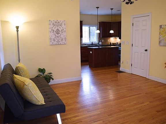 Gorgeous three level Townhome with 3 bedrooms and 2.5 bath located in the Fort Pond Brook Condominium community! This end unit offers an open and modern floor plan with high ceilings, tall windows and recessed lights throughout. Other highlights include hardwood flooring through the first level and second floor hallway, and high quality Berber carpeting in the bedrooms.The kitchen features high-end stainless steel appliances, cherry finish cabinets, granite counter tops, hanging pendent lights over the island, porcelain tile backsplash, and under cabinet lighting. On the second floor, you will find two generous sized bedrooms, a full bath, and a laundry room.The master suite is located on the third floor along with his and hers walk-in closets, a full bathroom. Outside you will find plenty of opportunities for entertaining or relaxing on the farmer's porch or the private stone patio. The walking distance to commuter rail to Boston, shops, Children's Museum and restaurants is a bonus!