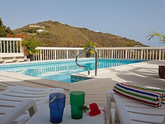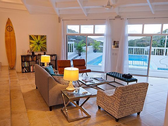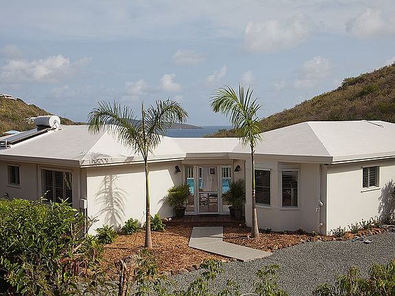 This modern & spacious 3-bedroom home in Grapetree has just had a complete make-over, and it is a knock-out. New tile flooring, new furniture, new split A/C units,new bathrooms etc. Gourmet kitchen, step-down living room, huge deck and pool with a view of Buck Island and walk to the Beach. Additional 1 acre lot included, for a total of 1.71 acres. Additional small bedroom and bath down stairs along with a garage, all on a quiet dead-end street. Open design with expansive bedrooms, totaling over 2,300 sq.ft. of interior space.The sleek new eat-in kitchen has NXR professional gas range, Bosch Dishwasher and LG side by side refrigerator. The floor plan is ideal for relaxation as well as entertaining with the open concept kitchen adjoining the dining room, and step-down living room with sliders that open out to the large wood deck and 17 X 28 foot sparkling pool! The deck has sunny and shaded areas from which to enjoy the Caribbean Sea views including Buck Island. Downstairs is a garage/ excellent storage, accordion shutters, and a small efficiency studio apartment that has a bathroom a kitchen installed. Best property on the market today sold furnished. Located on the east end of St. Croix Virgin Island. Close to 4 beaches and large acreage preserved by The Nature Conservatory. East drive to restaurants, golf, yacht club and town is 15 minutes away.