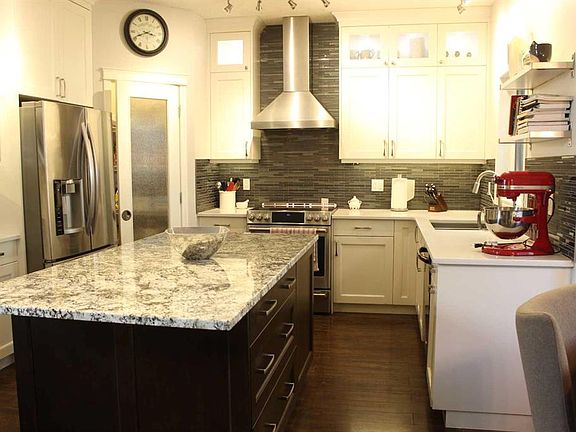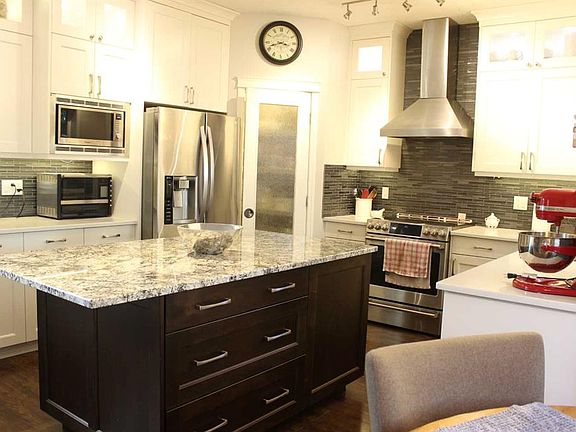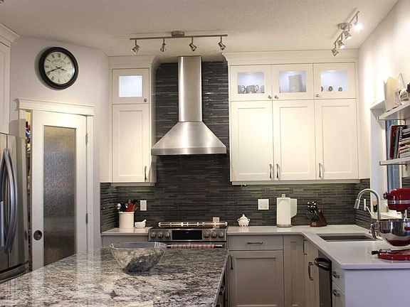 It’s everything you could want in a large home for the large family. Almost 3000 sq/ft of living space across all 3 levels with 5 bedrooms on a pie shape lot providing a big back yard. Nestled on a stunning location, tucked away in a quiet corner of the street overlooking a beautiful park/playground, just around the corner from all your daily needs at the local shopping centre. The kitchen is breathtaking with it’s huge granite island along with abundant counter and cupboard space and high-end finishes. The cozy living room is well integrated into the open concept of the main floor. The dining room is elegant as is the discrete little powder room just down the hall. Main floor conveniences like the generous mudroom, central laundry and smart walkthrough pantry will impress. No carpets on the main floor or upper level makes the living spaces sleek and clean. The Master bedroom is spacious and well appointed with walk-in closet and 5 pc en-suite bathroom. Two bedrooms and full bath complete the upper level which also boasts peek-a-boo views of the mountains and COP. The lower level is host to 2 more generous bedroom with big bright windows, 4 pc bath and plenty of storage space. The house has been well tended and upgraded with genius features including heat pump cooling/heating system which uses no gas when it’s warmer than -5 Celsius and solar panels that provide electric rebates and credits for a good portion of the year. The back yard is the envy of all, with extensive deck space, tons of yard and a gorgeous atmospheric retreat under the lighted pergola and outdoor fireplace mantle: perfect for cooling autumn nights. Absolutely no compromises or disappointments here, see for yourself and get ready to move home.