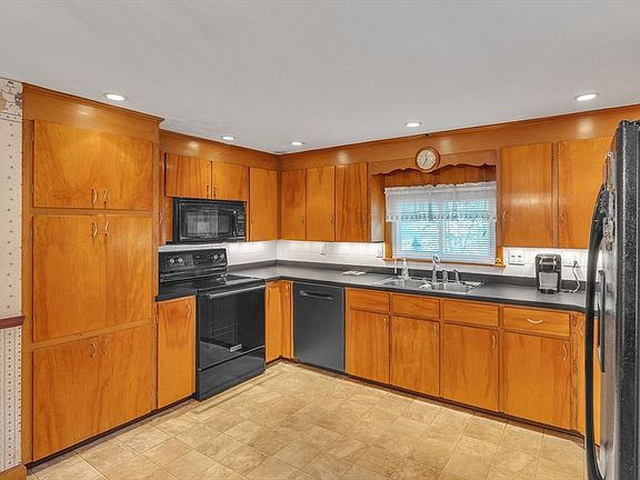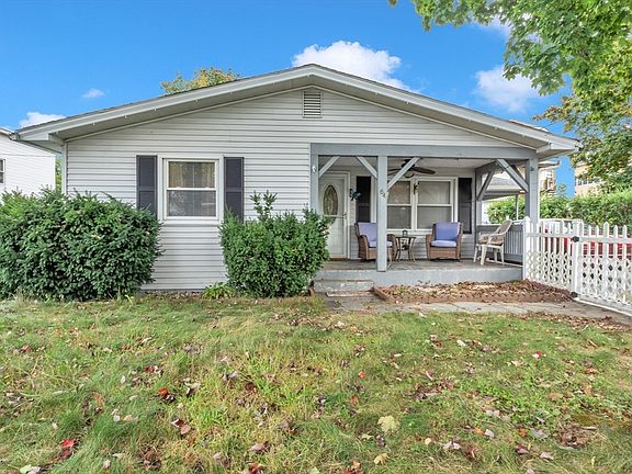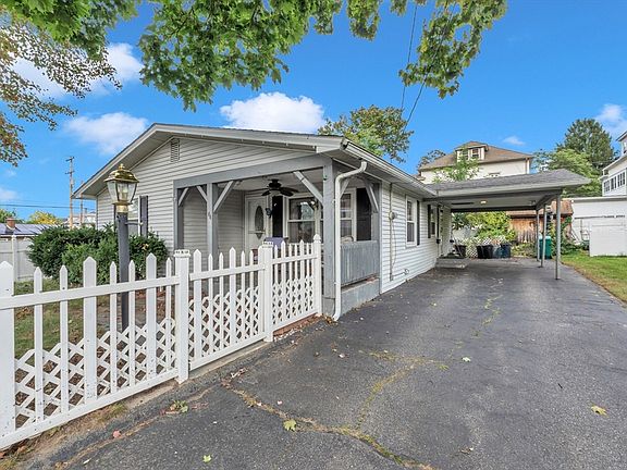 This charming ranch is ideal for first-time home buyers seeking affordable payments and the opportunity to personalize a well-built property. The eat-in kitchen features ample cabinet and counter space, modern appliances, recessed lighting, and is open to the spacious living room. Down the hall, you’ll find the main bedroom next to a full bathroom with a large vanity, a tub/shower combo, and a convenient laundry closet. The second bedroom includes a slider that leads to the wood deck, perfect for enjoying the fenced backyard. The carport provides shelter for your vehicle during winter months. While the basement is currently used for storage, there's a finished bonus room at the bottom of the stairs, offering additional flexible space. Last but not least is the inviting front porch completed with a light and overhead fan, making it enjoyable even in warmer weather.
