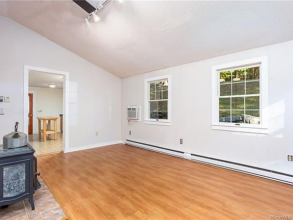 Connecticut country living at its best! This is an idyllic wooded retreat on a corner lot along the Farmington River. There is plenty of space to stretch out in this three-bedroom downstairs unit that includes 1.75 baths, a dining room, and a living room with vaulted ceiling. The dining room, main bedroom, and front bedroom have newly refinished hardwood floors. You can walk to picturesque downtown Collinsville, or you can bike on the nearby Farmington Valley Rail Trail. For those with a green thumb, there are fieldstone garden beds galore. Park either in the detached "big red barn" or use it for storage and keep your car right in front of the house. In the evenings, grill right outside the kitchen on the rustic stone patio, then make s'mores in the adjacent fire pit... or simply relax on the brand-new front porch and watch the world go by.