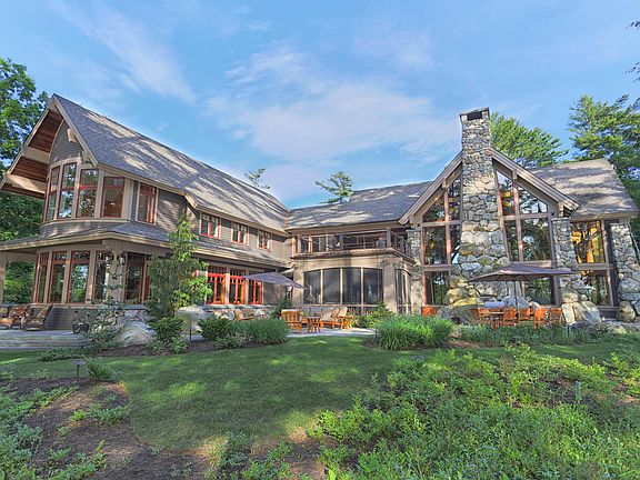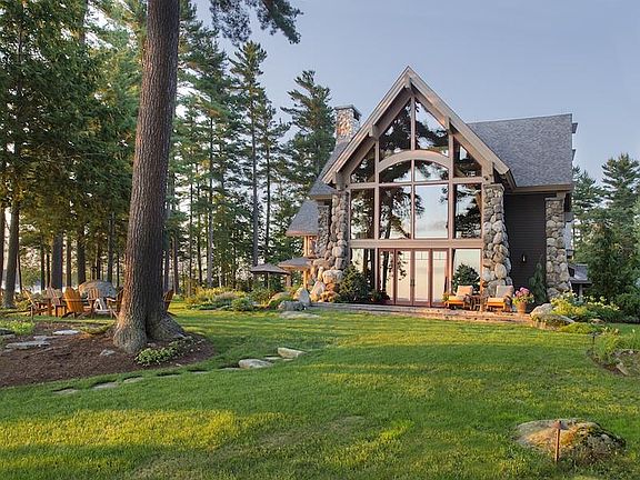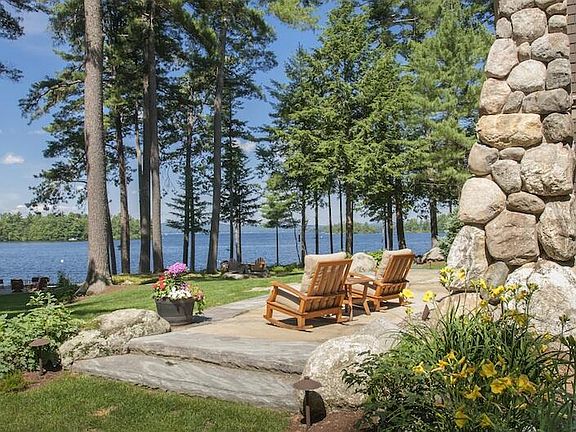 A Sebago Lake icon, this masterfully crafted estate is hallmarked by its seamless blend of rustic design and luxurious modern amenities. The open floor plan flows in flawless progression from the gourmet kitchen to the awe inspiring, two-story great room meticulously designed from floor to ceiling. The estate presides over 1,126' of water frontage accented by granite edged gardens and a manicured lawn extending from the back of the house to the water's edge. The outdoor entertaining space features a private dock, protected pristine cove with a sandy beach, a historic lighthouse, and multiple stone terraces that make the ideal spot for entertaining or relaxing as the afternoon slips into evening. The estate also boasts a cottage with kitchen,1 bedroom and 1 bath and a barn/garage with oversized door for extra vehicle/boat storage. The westerly view offers breathtaking views of Sebago Lake, set to the panoramic backdrop of New Hampshire's White Mountains.