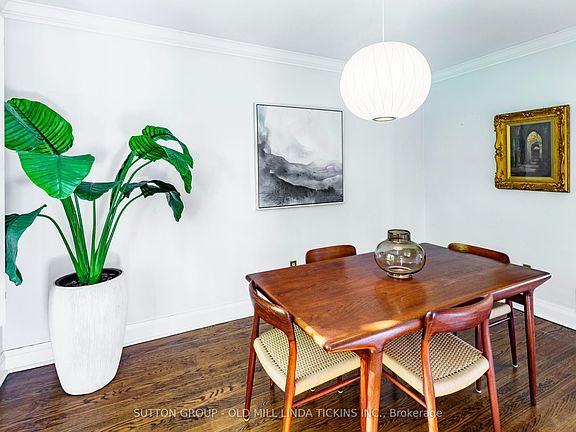 Kingsway South delight! Move-in-ready, sun-drenched 2+1 bedroom, 1 1/2 storey with large principal rooms, big, updated windows, gleaming hardwood floors, beautiful wood-burning fireplace, vintage crown moulding, eat-in kitchen with a walk-out to private garden backing on green space. The fully re-built & renovated basement features a sweet rec room, bedroom, spacious laundry room with sink & lots of storage & a beautiful renovated bath. Rebuilt front walkway & porch, plus rebuilt back deck. Within walking distance is the Montgomery Rec Centre with programs for the entire family, an indoor skating arena & pool. Also walk to parks & top-rated schools, Bloor St. subway, shops, dining. This is a gem in a family-minded community that you will come to love. It's a happy place.