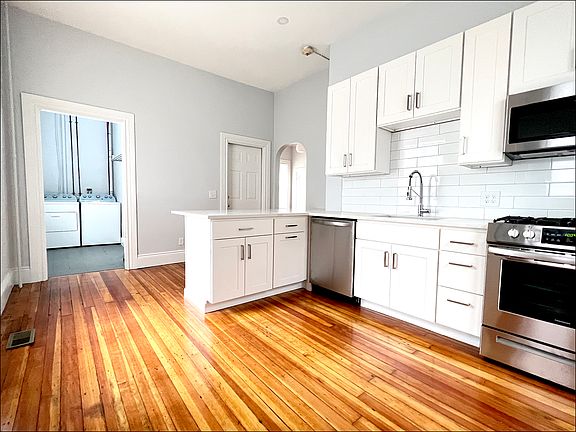 Welcome to this beautifully renovated apartment located in the Armory section of Providence's West Side. This oversized, 1697 sq. ft. apartment has its own private entrance, 10' ceilings, wood floors, 2 decorative fireplaces, and in unit free laundry. The modern kitchen has white subway tile backsplash, quartz countertops, a large bonus pantry, stainless appliances including: dishwasher and microwave. There is also a storage area in the basement included in the rent. 2 parking spaces are included in the rent. The property is located a few blocks to the Dexter Street Park, many hip restaurants and shops on Westminster Street and Broadway and close to Providence's downtown. Unfortunately, pets are not allowed. Contact now to schedule a viewing of this gorgeous space Owner pays for cold water, sewer, landscaping, and snow removal. Renter is responsible for gas and electric (and internet,, cable, etc.). No smoking allowed. Pets are not allowed.