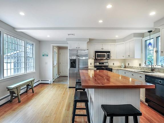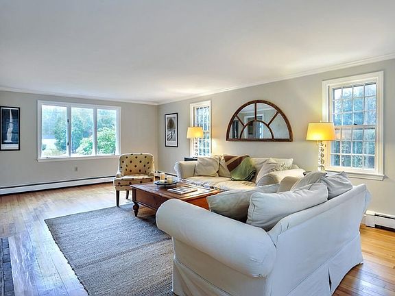 Move into this this beautiful 5 bedroom Colonial in a desirable neighborhood setting and enjoy summer in Duxbury! First floor is warm and inviting with hardwood floors throughout. Front to back living room with fireplace is light and bright. Spacious eat-in kitchen showcasing white cabinets, stainless appliances, granite, center island and woodstove flows into year round sunroom and formal dining room. Second floor boasts a spacious owner's suite, plus 4 additional bedrooms and full bath. New back deck overlooks private, flat back yard. Two car garage, plus third bay for storage. Mudroom, powder room with laundry area, finished lower level, central air, irrigation system, freshly painted interior. Enjoy all the comforts of living in this centrally located, much loved home.