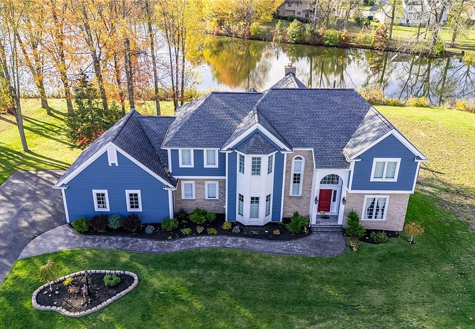 Welcome to 64 Woodfield Dr, nestled within a prestigious neighborhood in the town of Webster on a scenic Glen Brook Pond. This exceptional residence blends elegance, functionality, and thoughtful design, offering an unparalleled lifestyle. Spanning 2,997 sq. ft. in the main house, with an additional 1,000 sq. ft. in the partially finished basement, this home features 4 bedrooms, 2 full baths, and 1 half bath, with a layout designed for both comfort and entertaining. A grand two story foyer welcomes you into a light filled open floor plan with an inviting family room, featuring a cozy gas fireplace. The spacious dining area is ideal for gatherings, and the gourmet kitchen boasts a large center island with top-of-the-line appliances, a casual dining space, and seamless flow into the gorgeous living room. A first floor laundry provides added convenience. Upstairs, four generous bedrooms, while the primary suite serves as a private retreat with a spa inspired bath featuring a whirlpool tub, dual vanities, a walk-in shower, and a walk-in closet. Stunning Brazilian hardwoods throughout. Partially finished basement ready for your special touches. The backyard features a fiberglass saltwater pool overlooking a peaceful waterfront oasis. Over 300K in improvements. No expense spared here!