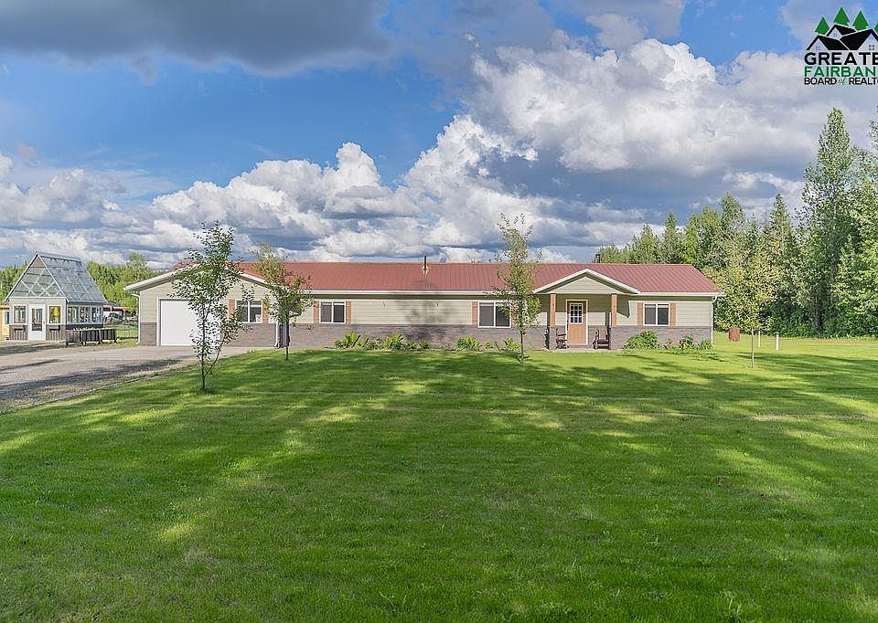 This beautiful 3 bedroom, 2 bathroom ranch is situated on nearly 1.8 acres of well maintained property and manicured landscaping. It offers an open concept living area with a custom kitchen, stainless steel appliances throughout with hard surface countertops. The master bedroom includes a custom ensuite bathroom with walk-in closet. An oversized one car garage with a bonus room for his or hers projects. A hand built greenhouse and raised garden beds are steps outside the door so you can grow your own plants and vegetables. The new boiler and HRV system make this modern build an efficient home while the wood stove keeps the authentic Alaskan feel, and offers a warm fire in those cold winter months.