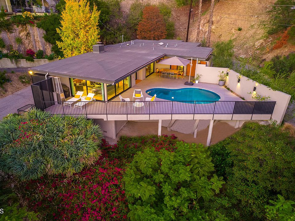 Forged in the Rossmoyne Hills, this beautiful mid century modern smart home has been meticulously updated while maintaining its true character. Upon arrival, beautifully detailed Redwood gates and thoughtful landscaping greet you providing privacy and a luxurious feel. Beyond the front door, this home features a true mid century modern feel with each living space having floor to ceiling Fleetwood glass doors slide open to the wrap around pool and patio area with breathtaking LA Views. Double sided fireplaces flank both the Living and Family rooms along with new 7 inch white oak floors. The Kitchen has granite counters, stainless steel appliances, breakfast area and convenient Laundry area. The spacious 3 Bedrooms, 1.75 Baths are all on the main floor. The Primary Suite features a sleek newly remodeled bathroom with dual PentalQuartz counter sinks, custom floating cabinetry, walk in shower w/dual shower heads and large soaking tub. It is a true retreat and escape from the daily hustle and bustle. This private home features a lower level Bonus Room perfect for teen hangout, home gym, office, or family game nights with a huge attached storage room and direct garage access. Entertaining is a dream on your newly finished patio, with sleek wrap around and pool and patio area-did I mention the VIEW? Truly the epitome of the ideal indoor/outdoor lifestyle. Other highlights include NEW A/C and Furnace, new Rachio smart sprinkler system, NEW Pool equipment and heater, upgraded lighting, enclosed porch off Family Room perfect for playroom or office. Each moment in this house has been thoughtfully reimagined and utilized. Excellent location close to shops, restaurants, The Americana and Galleria, freeways, and Blue Ribbon Schools! Don't miss this rare opportunity.